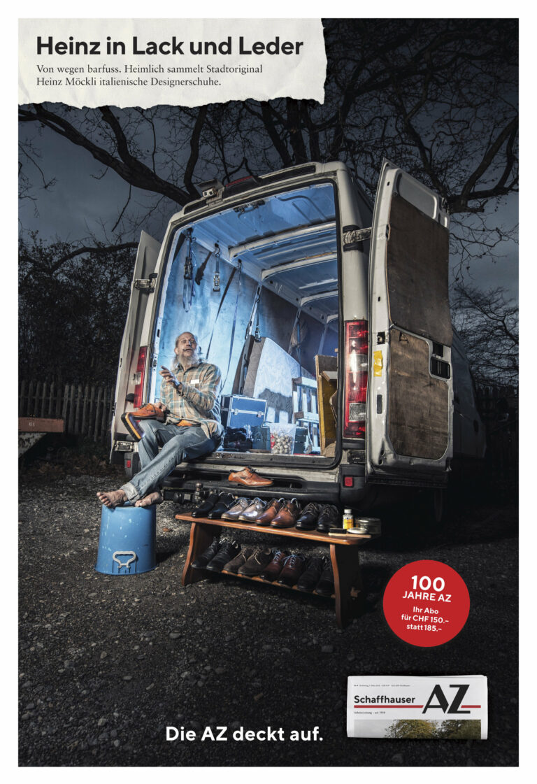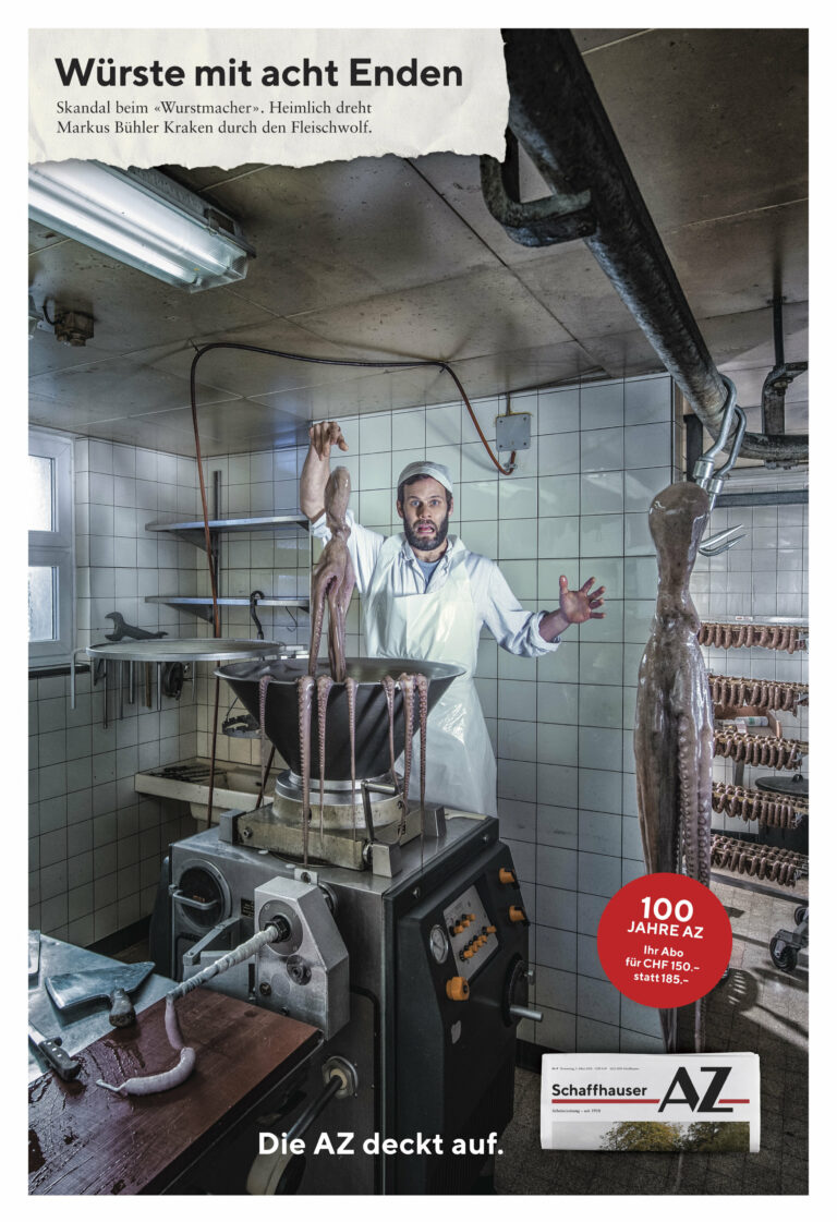Um diese Spezialität hervorzuheben, inszenierten wir Skandale um bekannte Schaffhauser Persönlichkeiten und schufen gemeinsam mit den Redaktoren der AZ abgefahrene Stories, die in Erinnerung bleiben.